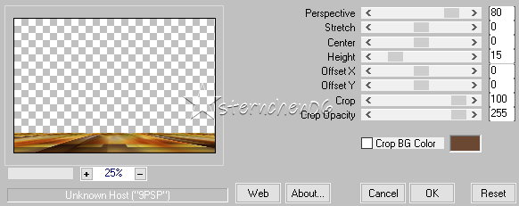 ![]() *9* Auswahl - Alle auswählen Bild - Rand hinzufügen - kein Haken bei symmetrisch - VG Farbe - OK Auswahl umkehren Effekte - Plugins - Simple - Diamonds Einstellen - Unschärfe - Gaußsche Unschärfe - Radius: 30 Auswahl - In Ebene umwandeln Effekte - Textureffekte - Jalousie - HG Farbe - OK Effekte - Kanteneffekte - Stark nachzeichnen Mischmodus: Auflösen Deckkraft: 50% Zusammenführen - Nach unten zusammenfassen Auswahl umkehren Effekte - 3D Effekte - Schlagschatten - OK *10* Neue Rasterebene Aktiviere das Auswahlwerkzeug (S) Benutzerdefinierte Auswahl ![]() Kopiere erneut dein misted Bild zurück zu deiner Leinwand Bearbeiten - In eine Auswahl einfügen Auswahl aufheben *11* Öffne eine deiner Haupttuben - Credit entfernen Bearbeiten - Kopieren Als neue Ebene in deine Leinwand einfügen Größe der Tube anpassen - orientiere dich an meinem Bild evtl. spiegeln Drücke Taste K Im oberen Menü Position X: 633 - Position Y: 31 Öffne deine Haupttube - Credit entfernen Bearbeiten - Kopieren Als neue Ebene in deine Leinwaqnd einfügen Größe der Tube anpassen - orientiere dich an meinem Bild evtl. spiegeln Drücke Taste K Im oberen Menü Position X: 63 - Position Y: 14 Drücke Taste M zum Abwählen Zusammenführen - Nach unten zusammenfassen *12* Effekte - Plugins - Alien Skin - Eye Candy 5:Impact - Perspective Shadow User Settings: ![]() Öffne deine Dekotube - Credit entfernen falls vorhanden Bearbeiten - Kopieren Als neue Ebene in deine Leinwand einfügen Größe anpassen - orientiere dich an meinem Bild Drücke Taste K Im oberen Menü Position X: 361 - Position Y: 379 Drücke Taste M zum Abwählen Effekte - Plugins - Alien Skin - Eye Candy 5:Impact - Perspective Shadow - OK Öffne und kopiere "tekst-autumn-2025" Als neue Ebene in deine Leinwand einfügen bei Bedarf einfärben Drücke Taste K Im oberen Menü Position X: 869 - Position Y: 96 Drücke Taste M zum Abwählen oder von Hand nach rechts setzen Effekte - Plugins - Alien Skin - Eye Candy 5:Impact - Perspective Shadow Settings: Drop Shadow, Lowest *13* Bild - Rand hinzufügen - symmetrisch 1 px - HG Farbe *14* Ändere die Bildgröße auf 900 px schreibe den Credit für die Tuben, BG by... und deine Signatur auf das Bild Alles zusammenfassen und als jpg/png speichern ![]() ![]() Tutorialübersetzung by sternchen06 #September 2025 |