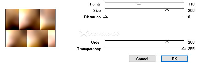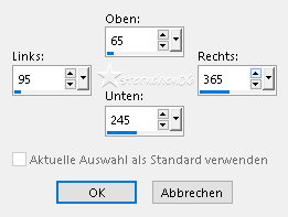 Achtung Änderungen in PSP 2020 beim Mischmodus ![]() ![]() Das Copyright des ins deutsche übersetzten Tutorials liegt bei mir sternchen06/A.Brede-Lotz Das Tutorial darf nicht kopiert, auf anderen Seiten zum Download angeboten werden Das Original Tutorial ist von Annie und du findest es hier ![]() Weitere Tutorials und Tuben findest du hier ![]() Du benötigst dein PSP 1 Copysafe Tube meine ist AI generiert Das Material aus der Kiste ![]() Entpacke das Material an einem Ort deiner Wahl Die Sel Datei verknüpfe mit deinem PSP Die Maske öffne im PSP Plugins: Simple Toadies Tramages FARBEN AUS DEM ORIGINAL: ![]() ![]() Gerne kannst du andere Farben verwenden ![]() *1* Öffne eine neue transparente Leinwand 650 x 500 px Fülle die Leinwand mit deiner VG Farbe Auswahl - Alle auswählen Öffne deine Tube - Credit entfernen Bearbeiten - Kopieren Zurück zu deiner Leinwand Bearbeiten - In eine Auswahl einfügen Auswahl aufheben *2* Effekte - Bildeffekte - Nahtloses Kacheln - Standard ![]() Einstellen - Unschärfe - Gaußsche Unschärfe - Radius: 30 Effekte - Plugins - Tramages - Legolator ![]() Ebene duplizieren Bild - Spiegeln - Horizontal spiegeln Bild - Spiegeln - Vertikal spiegeln Mischmodus: Überzug Deckkraft: 50% ![]() Zusammenführen - Nach unten zusammenfassen Effekte - Kanteneffekte - Stark nachzeichnen *3* Aktiviere das Auswahlwerkzeug (S) In der oberen Menüleiste - Benutzerdefinierte Auswahl ![]() ![]() Auswahl - In Ebene umwandeln Effekte - Plugins - Tramages - Tow the Line ![]() Auswahl aufheben *4* Effekte - Bildeffekte - Nahtloses Kacheln - OK Ebene duplizieren Bild - Spiegeln - Horizontal spiegeln Zusammenführen - Nach unten zusammenfassen Effekte - Bildeffekte - Nahtloses Kacheln - änder die Richtung auf Horizontal Auswahl - Alle auswählen Bild - Rand hinzufügen - kein Haken bei symmetrisch - HG Farbe ![]() Auswahl umkehren Effekte - Plugins - Tramages - Tow the Line - OK Auswahl umkehren Effekte - 3D Effekte - Schlagschatten ![]() Auswahl aufheben *5* Effekte - Bildeffekte - Nahtloses Kacheln - OK Aktiviere das Auswahlwerkzeug (S) In der oberen Menüleiste - Benutzerdefinierte Auswahl ![]() ![]() Auswahl - In Ebene umwandeln Effekte - Plugins - Tramages - Tow the Line - OK Auswahl aufheben Effekte - Plugins - Toadies - What You Are? ![]() Effekte - Kanteneffekte - Stark nachzeichnen Effekte - 3D Effekte - Schlagschatten - OK Mischmodus: Überzug *6* Effekte - Geometrieeffekte - Parallelogramm ![]() Ebene duplizieren Bild - Spiegeln - Horizontal spiegeln Zusammenführen - Nach unten zusammenfassen Effekte - Geometrieeffekte - Kreis - Transparent Effekte - Plugins - Simple - Left Right Wrap *7* Auswahl - Alle auswählen Bild - Rand hinzufügen - kein Haken bei symmetrisch - VG Farbe ![]() Auswahl umkehren Effekte - Plugins - Simple - Diamonds Einstellen - Unschärfe - Gaußsche Unschärfe - Radius: 30 Effekte - 3D Effekte - Schlagschatten - OK Auswahl aufheben *8* Effekte - Plugins - Simple - Left Right Wrap Ergebnis bis hier: ![]() Auswahl - Auswahl lladen/speichern - Auswahl aus Datei.... ![]() LADEN Effekte - Plugins - Tramages - Tow the Line - OK Effekte - 3D Effekte - Schlagschatten - OK Auswahl aufheben *9* Effekte - Plugins - Simple - Left Right Wrap Neue Rasterebene fülle diese mit der HG Farbe Ebenen - Neue Maskenebene - Aus Bild ![]() Gruppe zusammenfassen Effekte - Kanteneffekte - Stark nachzeichnen Effekte - 3D Effekte - Schlagschatten - OK *10* Ebene duplizieren Mischmodus: Aufhellen Deckkraft: 50% Zusammenführen - Sichtbare zusammenfassen Bearbeiten - Kopieren Neuee Rasterebene Aktiviere das Auswahlwerkzeug (S) In der oberen Menüleiste - Benutzerdefinierte Auswahl ![]() ![]() fülle die Auswahl mit der VG Farbe Auswahl - Ändern - Verkleinern - 5px Bearbeiten - In eine Auswahl einfügen Auswahl auheben *11* Bild - Frei drehen ![]() Drücke Taste K im oberen Menü Position X: 107 - Position Y: 55 Drücke Taste M zum Abwählen Effekte - Kanteneffekte - Nachzeichnen Effekte - 3D Effekte - Schlagschatten - OK Effekte - Bildeffekte - Nahtloses Kacheln - Richtung ist immer noch Horizontal *12* Ebene duplizieren Bild - Spiegeln - Horizontal spiegeln Bild - Spiegeln - Vertikal spiegeln Mischmodus: Aufhellen (Unterbelichten) Öffne deine Haupttube - Credit entfernen Bearbeiten - Kopieren Als neue Ebene in deine Leinwand einfügen passe die Größe der Tube an - orientiere dich an meinem fertigen Bild das es auf die Tube ankommt, habe ich die K Verschiebung nicht angewand ansonsten X: 262 - Y: 5 Ebenen duplizieren Einstellen - Unschärfe - Gaußsche Unschärfe - Radius: 30 Ebenen - Anordnen - Nach unten verschieben Mischmodus: Multiplikation *13* Öffne und kopiere "tekst-cora" als neue Ebene in deine Leinwand einfügen Position X: 87 - Position Y: 81 Drücke Taste M zum Abwählen Ebene duplzieren Bild - Spiegeln - Horizontal spiegeln Bild - Spiegeln - Vertikal spiegeln Bild - Rand hinzufügen - symmetrisch 1 px - HG Farbe *14* Ändere die Bildgröße für mich auf 900 px schreibe den Credit für die Tube und deine Signatur auf das Bild Alles zusammenfassen und als jpg/png speichern ![]() Tutorialübersetzung by sternchen06 #Oktober 2025 |