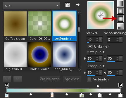 ![]() *1* Öffne eine neue transparente Leinwand 650 x 500 px fülle die Leinwand mit der VG Farbe Effekte - Bildeffekte - Versatz - HG Farbe ![]() *2* Ebene duplizieren Effekte - Plugins - VanDerLee - Unplugged X - Warning ![]() Bild - Spiegeln - Horizontal spiegeln Bild - Spiegeln - Vertikal spiegeln Mischmodus: Aufhellen (Original) Ebenen - Zusammenführen - Nach unten zusammenfassen Effekte - Kanteneffekte - Stark nachzeichnen *3* Neue Rasterebene Klicke auf die FG Farbe - Reiter Farbverlauf suche links nach dem Gradient cre@nnie-e26.PspGradient - Nova ![]() Wenn du ander Farben hast -ändere die Farben der Farbleiste entsprechend und speicher das Gradient neu Aktiviere das Auswahlwerkzeug (S) - Benutzerdefinierte Auswahl ![]() fülle die Auswahl mit dem Farbverlauf Effekte - 3D Effekte - Schlagschatten ![]() Auswahl aufheben *4* Effekte - Bildeffekte - Nahtloses Kacheln - Vertikal ![]() Deckkraft der Ebene: 75% Aktiviere im EM die unterste Ebene Ebene duplizieren Bild - Spiegeln - horizontal spiegeln Mischmodus der Ebene: Luminanz Deckkraft: 50% *5* Auswahl - Alle auswählen Bild - Rand hinzufügen - kein Haken bei symmetrisch - HG Farbe ![]() Effekte - Bildeffekte - Nahtloses Kacheln - Standard ![]() Auswahl - Umkehren Einstellen - Unschärfe - Gaußsche Unschärfe - Radius: 20 Effekte - Plugins - Mystic Nights - Zoom ![]() Auswahl umkehren Effekte - 3D Effekte - Schlagschatten - OK *6* Auswahl - Alle auswählen Bild - Rand hinzufügen - kein Haken bei symmetrisch - VG Farbe ![]() Bearbeiten - Kopieren Auswahl umkehren Bearbeiten - In eine Auswahl einfügen Effekte - Plugins - Simple - Blintz Effekte - Kanteneffekte - Stark nachzeichnen Effekte - 3D Effekte - Schlagschatten - OK *7* Auswahl - Auswahl laden/speichern - Auswahl aus Datei.... ![]() LADEN Auswahl - In Ebene umwandeln Auswahl aufheben Effekte - Verzerrungseffekte - Polarkoordinaten ![]() Bild - Spiegeln - Vertikal spiegeln Effekte - Plugins - Alien skin - Eye Candy 5:Impact - Glass User Settings: easter26-cre@nnie-glass ![]() Objekte - Ausrichten - Unten *8* Öffne "easter26-pr-2" - Credit entfernen oder deinen eigenen Strauß Bearbeiten - Kopieren als neue Ebene in deine Leinwand einfügen Ändere die Bildgröße des Straußes auf 40% Drücke Taste K Position X: 99,00 - Position Y: 81,00 Drücke Taste M Ebenen - Anordnen - Nach unten verschieben Ebene duplizieren Bild - Spiegeln - horizontal spiegeln Ebenen - Zusammenführen - Nach unten zusammenfassen Effekte - 3D Effekte - Schlagschatten - OK *9* Aktiviere im EM die unterste Ebene Effekte - Plugins - Mystic Nights - Zoom ![]() Ergebnis: