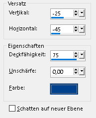 ![]() *7* Aktiviere im EM Raster1 Auswahl - Auswahl laden/speichern - Auswahl aus Datei... ![]() LADEN Auswahl - In Ebene umwandeln Auswahl aufheben Ebenen - Anordnen - Nach oben verschieben Effekte - 3D Effekte - Schlagschatten - HG Farbe ![]() Effekte - 3D Effekte - Schlagschatten - HG Farbe ![]() Effekte - Kanteneffekte - Nachzeichnen Effekte - Kanteneffekte - Stark nachzeichnen *8* Öffne deine misted Tube - evtl. Credit entfernen Bearbeiten - Kopieren als neue Ebene in deine Leinwand einfügen Drücke Taste K obere Menüleiste Position X: 221 - Position Y: 61 Drücke Taste M Mischmodus: Hartes Licht Deckkraft: 50% Effekte - Kanteneffekte - Stark nachzeichnen Ebenen - Zusammenführen - Sichtbare zusammenfassen *9* Auswahl - Auswahl laden/speichern - Auswahl aus Datei... ![]() LADEN Auswahl - In Ebene umwandeln Effekte - 3D Effekte - Schlagschatten ![]() Auswahl aufheben Effekte - Kanteneffekte - Nachzeichnen Ebene duplizieren Bild - Spiegeln - Horizontal spiegeln Ebenen - Zusammenführen - Nach unten zusammenfassen Ebene duplizieren Bild - Größe ändern - kein Haken bei Größe aller Ebenen anpassen Nach Prozentsatz - auf 90% verkleinern Mischmodus: Hartes Licht Deckkraft: 50% Effekte - 3D Effekte - Schlagschatten- OK *10* Haupttube - Credit entfernen - evtl. spiegeln Bearbeiten - Kopieren als neue Ebene in deine Leinwand einfügen passe die Tubengröße an - orientiere dich an meinem Bild Drücke Taste K obere Menüleiste Position X: 524 - Position Y: 20 Drücke Taste M Deckkraft der Ebene: 80% *11* Öffne und kopiere "tekst-itswinter" als neue Ebene in deine Leinwand einfügen - bei Bedarf einfärben Drücke Taste K obere Menüleiste Position X: 139 - Position Y: 8 Drücke Taste M Effekte - 3D Effekte - Schlagschatten ![]() Öffne und kopiere "snow" als neue Ebene in deine Leinwand einfügen *12* Auswahl - Alle auswählen Bild - Rand hinzufügen - kein Haken bei symmetrisch - wie eingestellt, ändere die Farbe auf die HG Farbe ![]() Auswahl umkehren Bearbeiten - In eine Auswahl einfügen (snow sollte noch in der Zwischenablage sein) Auswahl umkehren Effekte - 3D Effekte - Schlagschatten ![]() Auswahl aufheben Bild - Rand hinzufügen - symmetrisch 1 px - HG Farbe Ändere die Bildgröße für mich auf 900 px schreibe den Credit für die Tube - BG by... und deine Signatur auf das Bild Alles zusammenfassen und als jpg/png speichern Tutorialübersetzung by sternchen06 #Januar 2026 |