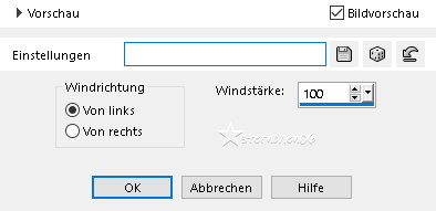 ![]() Ebenen - Zusammenführen - Nach unten zusammenfassen *8* Ebene duplizieren Öffne und kopiere "tekst-sparklingchristmas" als neue Ebene in deine Leinwand einfügen bei Bedarf einfärben Einstellen - Bildrauschen entfernen/hinzufügen - Bildrauschen hinzufügen - OK Drücke Taste K Position X: 214 - Position Y: 76 Effekte - Kanteneffekte - Nachzeichnen Effekte - 3D Effekte - Schlagschatten ![]() Ebene duplizieren Effekte - Verzerrungseffekte - Wind ![]() Den Effekt noch 2 mal wiederholen Drücke Taste K Position X: 161 - Position Y: 104 Drücke Taste M Mischmodus: Überzug Ebenen - Anordnen - Nach unten verschieben Zusammenfassen - Nach unten zusammenfassen *9* Aktiviere im EM die oberste Ebene Effekte - 3D Effekte - Schlagschatten ![]() Zusammenfassen - Nach unten zusammenfassen Bearbeiten - Ausschneiden Aktiviere das Auswahlwerkzeug (S) - Benutzerdefinierte Auswahl ![]() Fülle die Auswahl mit der VG Farbe Einstellen - Bildrauschen entfernen/hinzufügen - Bildrauschen hinzufügen - OK Auswahl - Ändern - Verkleinern - 25 px Bearbeiten - In eine Auswahl einfügen Effekte - 3D Effekte - Schlagschatten - OK Auswahl aufheben *10* Effekte - 3D Effekte - Schlagschatten 50 - 25 - 60 - 40 - schwarz Effekte - Kanteneffekte - Nachzeichnen Öffne erneut deine Haupttube - Bearbeiten - Kopieren Als neue Ebene in deine Leinwand einfügen evtl. spiegeln - Tubengröße anpassen - orientiere dich an meinem fertigen Bild Drücke Taste K Position X: 372 - Position Y: 15 Drücke Taste M oder von Hand versetzen - orientiere dich an meinem fertigen Bild Ebene duplizieren Effekte - Verzerrungseffekte - Wind - OK Wiederhole den Effekt Mischmodus: Aufhellen ( ehemals Unterbelichten) Ebenen - Anordnen - Nach unten verschieben *11* Aktiviere im EM die oberste Ebene Effekte - 3D Effekte - Schlagschatten ![]() Öffne und kopiere "deco-sparkling christmas" - oder deine eigene Deko als neue Ebene in deine Leinwand einfügen Drücke Taste K Position X: 691 - Position Y: 0 Drücke Taste M Effekte - 3D Effekte - Schlagschatten - OK wenn die Deko auf der Tube ist schiebe die Ebene an 2. Stelle Bild - Rand hinzufügen - symmetrisch 1 px - HG Farbe *12* Ändere die Bildgröße für mich auf 900 px Schreibe den Credit für die Tube und deine Signatur gut leserlich auf das Bild Alles zusammenfassen und als jpg/png speichern Tutorialübersetzung by sternchen06 #Dezember 2025 |