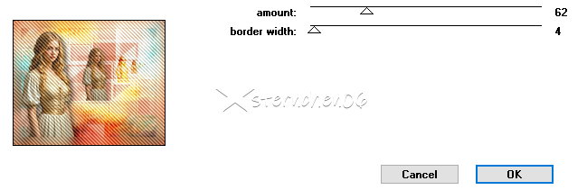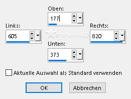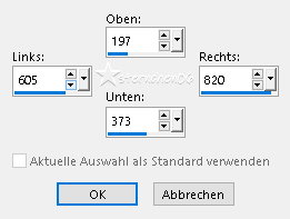 Achtung Änderungen in PSP 2020 beim Mischmodus ![]() Das Copyright des ins deutsche PSP übersetzten Tutorials liegt bei mir sternchen06/A.Brede-Lotz Das Tutorial darf nicht kopiert oder auf anderen Seiten zum Download angeboten werden. Das Original Tutorial ist von Estela Fonseca Obrigado Estela como eu posso traduzir seus tutoriais para o alemão Du findest es hier Weitere Tutorials und Tuben findest du hier ![]() Du benötigst: Dein PSP eine Copysafe Tube Meine sind AI generiertDas Material aus der Kiste ![]() Entpacke das Material an einem Ort deiner Wahl Per Doppelklick wird "EF-Fragmentos" dem entsprechendem Filter zugefügt PLUGINS: I.C.Net Software - FU 2 VM Distortion - Radial Pox und Slicer FM Tile Tools - Saturation Emboss penta.com - jeans Alien Skin - Eye Canty 5:Impact - Perspective Shadow ORIGINAL FARBEN: ![]() Gerne können VG und HG andere Farben passend zu deiner Tube sein ~1~ Öffne eine neue transparente Leinwand 900 x 730 px Auswahl - Alle auswählen ~2~ Öffne und kopiere "Fundo" zurück zu deiner Leinwand Bearbeiten - In eine Auswahl einfügen bei Bedarf passend einfärben Auswahl aufheben ~3~ Ebene duplizieren Effekte - Plugins - I.C.Net Software - FU2 - VM Distortion - Radial Pox ![]() Effekte - Plugins - I.C.Net Software - FU2 - VM Distortion - Slicer ![]() ~4~ Mischmodus: Hartes Licht Effekte - Plugins - FM Tile Tools - Saturation Emboss ![]() ~5~ Öffne und kopiere "EF-Fragmentos_Deco_1" als neue Ebene in deine Leinwand einfügen Ebene duplizieren ~6~ Aktiviere das Umfärber Werkzeug ![]() und färbe mit der VG Farbe ein Einstellen - Bildrauschen hinzufügen/entfernen - Bildrauschen hinzufügen ![]() ~7~ Öffne deine Haupttube - Credit entfernen Bearbeiten - Kopieren als neue Ebene in deine Leinwand einfügen passe die Größe der Tube an - orientiere dich an meinem fertigen Bild Objekte - Ausrichten - Unten Objekte - Ausrichten - Links oder bei älteren Versionen von Hand versetzen ~8~ Einstellen - Farbton und Sättigung - Resonanz: 32 (Optional) Ebene duplizieren Anordnen - Nach unten verschieben ~9~ Effekte - Reflexionseffekte - Spiegelkabinett ![]() Auswahlerkzeug (S) - Benutzerdefinierte Auswahl Originalwerte: ![]() Meine: ![]() ~10~ Bearbeiten - Ausschneiden Auswahl aufheben Bearbeiten - Als neue Ebene einfügen ~11~ Drücke Taste K ![]() Mischmodus: Abdunkeln (Überbelichten) ~12~ Ergebnis: