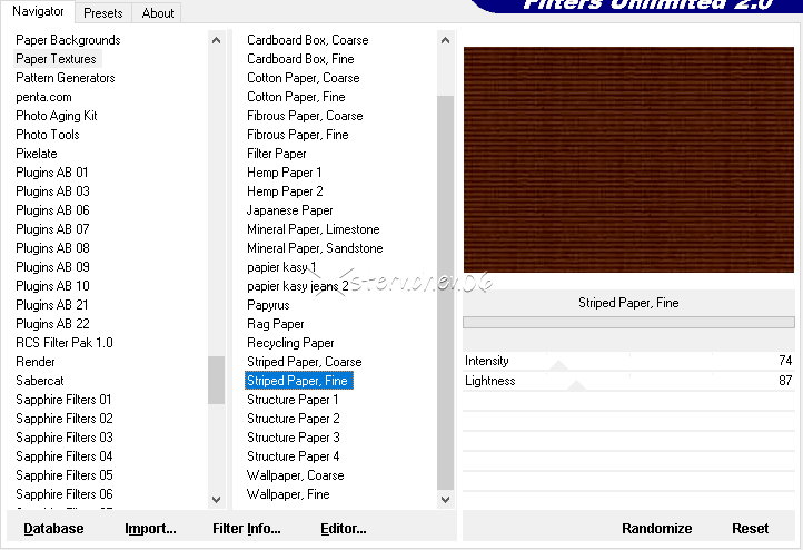 Achtung Änderungen in PSP 2020 beim Mischmodus ![]() Das Copyright des ins deutsche PSP übersetzten Tutorials liegt bei mir sternchen06/A.Brede-Lotz Das Tutorial darf nicht kopiert oder auf anderen Seiten zum Download angeboten werden. Das Original Tutorial ist von Estela Fonseca Obrigado Estela como eu posso traduzir seus tutoriais para o alemão Du findest es hier Weitere Tutorials und Tuben findest du hier ![]() Du benötigst: Dein PSP eine Copysafe Tube Meine ist AI generiert Das Material aus der Materialkiste![]() Entpacke das Material an einem Ort deiner Wahl Öffne die Maske in deinem PSP PLUGINS: I.C.Net Software - FU2 Paper Textures - Striped Paper, Fine AAA Filters - AAA - Multi-Filter FARBEN Original: