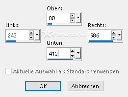 ![]() VG/HG ![]() *1* Öffne eine neue transparente Leinwand 800 x 550 px fülle diese mit der VG Farbe *2* Effekte - Plugins - I.C.Net Software - FU2 - Paper Textures - Striped Paper, Fine ![]() *3* Neue Rasterebene fülle diese mit der HG Farbe Effekte - Plugins - AAA Filters - AAA - Multi-Filter ![]() *4* Einstellen - Bildrauschen entfernen/hinzufügen - Bildrauschen hinzufügen ![]() Ebenen - Neue Maskenebene - Aus Bild ![]() Ebenen - Zusammenführen - Gruppe zusammenfassen *5* Öffne und kopiere "agiFrame_" als neue Ebene in deine Leinwand einfügen bei Bedarf färbe den Rahmen passend zu deinen Farben ein *6* Aktiviere das Auswahlwerkzeug (S) - Benutzerdefinierte Auswahl ![]() aktiviere im EM Rasterebene 1 *7* Auswahl - In Ebene umwandeln Ebenen - Anordnen - Nach oben verschieben ![]() *8* Öffne deine Tube - Credit entfernen Bearbeiten - Kopieren zurück zu deiner Leinwand Bearbeiten - Als neue Ebene einfügen - evtl. verkleinern Auswahl umkehren drücke die Entfernen Taste Auswahl aufheben *9* Aktiviere im EM die oberste Ebene Effekte - 3D Effekte - Schlagschatten ![]() Ebenen 2 mal nach unten zusammenfassen *10* Ebene duplizieren Bild - Größe ändern - auf 50% verkleinern - kein Haken bei Größe aller Ebenen anpassen Drücke Taste K Position: *11* Bild - Frei drehen ![]() *12* Ebene duplizieren Bild - Frei drehen ![]() Bild - Größe ändern - auf 80% verkleinern - kein Haken bei Größe aller Ebenen anpassen Drücke Taste K Position: Ebenen - Zusammenführen - Sichtbare zusammenfassen *13* Bild - Rand hinzufügen - symmetrisch 30 px - weiß Einstellen - Fotokorrektur in einem Schritt Bearbeiten - Wiederholen Fotokorrektur in einem Schritt Wenn du magst kannst du noch SIMPLE in einer schönen Schrift aufs Bild schreiben *14* Ändere die Bildgröße für mich auf 900 px Schreibe den Credit für die Tube und deine Signatur leserlich auf den Rahmen Alles zusammenfassen und als jpg/png speichern Tutorialübersetzung by sternchen06 #März 2026 |