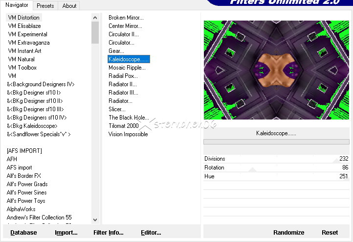 ![]() *1* Öffne eine neue transparente Leinwand 950 x 600 px Fülle die Leinwand mit dem Farbverlauf Auswahl - Alle auswählen Öffne deine Tube - Credit entfernen Bearbeiten - Kopieren zurück zu deiner Leinwand Bearbeiten - In eine Auswahl einfügen Auswahl aufheben *2* Effekte - Bikldeffekte - Nahtloses Kacheln - Standard ![]() Einstellen - Unschärfe - Strahlenförmige Unschärfe ![]() Effekte - Mehdi - Weaver ![]() An dieser Stelle habe ich den HG eingefärbt, da er so farblich nicht passte *3* Effekte - Plugins - Simple - Top Left Mirror Effekte - Plugins - Simple - Pizza Slice Mirror Effekte - Kanteneffekte - Nachzeichnen Effekte - Plugins - Simple - Top Bottom Wrap Auswahl - Auswahl laden/speichern - Auswahl aus Datei.... ![]() LADEN Neue Rasterebene fülle diese mit dem Farbverlauf Auswahl aufheben *4* Effekte - Plugins - Tramages Tow the Line ![]() Effekte - Plugins - Tramages Tow the Line ![]() Neue Rasterebene Auswahl - Auswahl laden/speichern - Auswahl aus Datei.... ![]() Fülle die Auswahl mit weiß Auswahl aufheben Zusammenführen - Nach unten zusammenfassen *5* Ebene duplizieren Bild - Größe ändern - kein Haken bei Größe aller Ebenen anpassen Nach Prozentsatz - auf 75% verkleinern Effekte - Plugins - Toadies - Weaver ![]() Bild - Spiegeln - Horizontal spiegeln Ebenen - Anordnen - Nach unten verschieben Oberste Ebene aktivieren Zusammenführen - Nach unten zusammenfassen Effekte - 3D Effekte - Schlagschatten 1 - 1 - 55 - 10 - schwarz *6* Aktiviere im EM die unterste Ebene Effekte - Plugins - L en K landksiteofwonders - Zitah ![]() Einstellen - Schärfe - Scharfzeichnen Aktiviere die oberste Ebene Öffne und kopiere "déco- fond" Als neue Ebene in deine Leinwand einfügen Ebenen - Anordnen - Nach unten verschieben Aktiviere die oberste Ebene Effekte - Plugins - VanDerLee - Unplugged X - Vertical Tile ![]() Alles zusammenfassen *7* Neue Rasterebene Auswahl - Auswahl laden/speichern - Auswahl aus Datei.... ![]() LADEN Fülle die Auswahlen mit weiß Auswahl - Ändern - Verkleinern - 4 px Drücke die Entfernen Taste Neue Rasterebene Fülle die Auswahlen mit dem Farbverlauf Effekte - Plugins - Tramages - Tow the Line ![]() Neue Rasterebene Effekte - 3D Effekte - Aussparung ![]() Zusammenführen - Nach unten zusammenfassen Effekte - Plugins - Alien Skin - Eye Candy 5:Impact - Glass ![]() Auswahl aufheben Ebenen - Anordnen - Nach unten verschieben *8* Aktiviere im EM die oberste Ebene Zusammenführen - Nach unten zusammenfassen Effekte - 3D Effekte - Schlagschatten 1 - 1 - 55 - 10 - schwarz Öffne deine Tube - Credit entfernen Bearbeiten - Kopieren zurück zu deiner Leinwand Bearbeiten - Als neue Ebene einfügen Passe die Größe der Tube an - orientiere dich an meinem Bild Mittig ausrichten Effekte - 3D Effekte - Schlagschatten 1 - 1 - 55 - 10 - schwarz Öffne und kopiere "tube Deco0000" zurück zu deiner Leinwand Bearbeiten - Als neue Ebene einfügen Öffne und kopiere "Déco-001" zurück zu deiner Leinwand Bearbeiten - Als neue Ebene einfügen schiebe die Deko nach links - orientiere dich an meinem Bild Alles zusammenfassen *9* Bearbeiten - Kopieren (zur sicherheit als neues Bild einfügen) Bild - Rand hinzufügen - symmetrisch 2 px - VG Farbe 5 px - weiß 2 px - VG Farbe 20 px - weiß 2 px - VG Farbe 5 px - weiß 2 px - VG Farbe Aktiviere den Zauberstab (Toleranz und Randschärfe 0) klicke damit in den 20 px weißen Rand Bearbeiten - In eine Auswahl einfügen Einstellen - Unschärfe - Gaußsche Unschärfe - Radius: 15 *10* Effekte - Plugins - L en K landksiteofwonders - Frederiek ![]() Effekte - Plugins - L en K landksiteofwonders - Palmyre ![]() Auswahl aufheben *11* Auswahl - Alle auswählen Bild - Rand hinzufügen - symmetrisch 40 px - weiß Auswahl umkehren Bearbeiten - In eine Auswahl einfügen (falls dein Bild nicht mehr im Zwischenspeicher ist kopiere es erneut ) Effekte - Plugins - VM Distortion - Kaleidoskope ![]() Ich habe bei Hue 0 eingegeben wegen dem grün Effekte - Plugins - VM Distortion - Kaleidoskope ![]() Auswahl umkehren Effekte - 3D Effekte - Schlagschatten 0 - 0 - 75 - 20 - schwarz Auswahl aufheben *12* Bild - Rand hinzufügen - symmetrisch 1 px - VG Farbe Ändere die Bildgröße für mich auf 900 px Schreibe den Credit für die Tube und deine Signatur auf das Bild speichere das Bild als jpg/png Tutorialübersetzung by sternchen06 #Oktober 2025 |