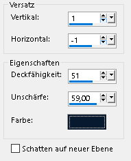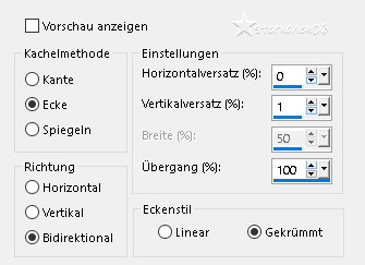 ![]() Farbverlauf: ![]() ~1~ Öffne eine neue transparente Leinwand 850 x 500 px fülle diese mit dem Farbverlauf Effekte - Plugins - Simple - Pizza Slice Mirror Effekte - Bildeffekte - Nahtloses Kacheln ![]() Effekte - Reflexionseffekte - Spiegelrotation ![]() Einstellen - Schärfen - Stark scharfzeichnen ~2~ Öffne und kopiere "fagyos-dekor-mts2025" als neue Ebene in deine Leinwand einfügen Öffne dein misted Bild - Credit entfernen falls vorhanden Bearbeiten - Kopieren zurück zu deiner Leinwand Bearbeiten - Als neue Ebene einfügen Drücke K ![]() Drücke M Ansicht im EM ![]() ~3~ Öffne und kopiere "fagyos-dekor2- mts2025" als neue Ebene in deine Leinwand einfügen Öffne und kopiere "fagyos-szöveg-mts-2025 als neue Ebene in deine Leinwand einfügen Drücke K ![]() Drücke M Offne "_243.maryts" - Credit entfernen Bearbeiten - Kopieren zurück zu deiner Leinwand Bearbeiten - Als neue Ebene einfügen Ebenen - Zusammenführen - Sichtbare zusammenfassen ![]() ~4~ Bild - Rand hinzufügen - symmetrisch 3 px - weiß 3 px - HG Farbe 15 px - weiß 3 px - HG Farbe Auswahl - Alle auswählen Bild - Rand hinzufügen - symmetrisch 30 px - weiß Auswahl - umkehren fülle die Auswahl mit dem Farbverlauf Klicke in der Materialfarbpalette auf die VG Farbe - Reiter Muster ![]() Neue Rasterebene Klicke 2 - 3 mal mit dem Muster in die Auswahl Einstellen - Unschärfe - Gaußsche Unschärfe - Radius: 54 Auswahl halten Nach unten zusammenfassen Effekte - Plugins - I.C.Net Software - FU2 - Button & Frames - 3D Glass Frame 1 ![]() Auswahl aufheben ~5~ Öffne deine Haupttube - Credit entfernen Bearbeiten - Kopieren zurück zu deiner Leinwand Bearbeiten - Als neue Ebene einfügen Größe der Tube anpassen - orientiere dich an meinem Bild schiebe die Tube auf die linke Seite - orientiere dich an meinem Bild Effekte - 3D Effekte - Schlagschatten - Farbe ![]() ![]() Alles zusammenfassen ~6~ Änddere die Bildgröße für mich auf 900 px schreibe den Credit für die Tube - BG by .... und deine Signatur leserlich auf das Bild Alles zusammenfassen und als jpg/png speichern Tutorialübersetzung by sternchen06 #November 2025 |