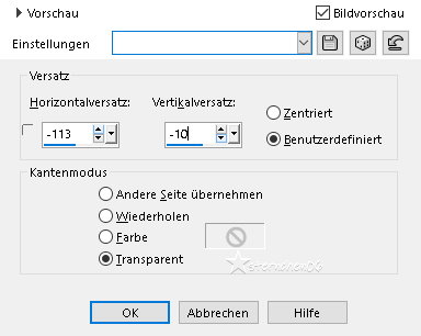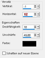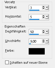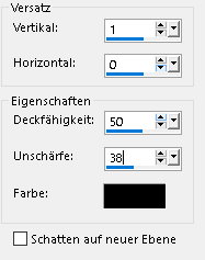 Öffne und kopiere "dekor2-mts-2025" als neue Ebene in deine Leinwand einfügen Effekte - Bildeffekte - Versatz ![]() Öffne und kopiere "Keret-ötlet-mts-2025" als neue Ebene in deine Leinwand einfügen Effekte - Bildeffekte - Versatz ![]() Zusammenführen - Alle zusammenfassen *5* Bild - Rand hinzufügen - symmetrisch 2 px - Farbe3 Auswahl - Alle auswählen Bild - Rand hinzufügen - symmetrisch 35 px - Farbe 6 Auswahl umkehren Effekte - Plugins - Graphic Plus - Cross Shadow ![]() Auswahl umkehren Effekte - 3D Effekte - Schlagschatten ![]() Auswahl aufheben *6* Öffne deine Haupttube - Credit entfernen Bearbeiten - Kopieren als neue Ebene in deine Leinwand einfügen Größe der Tube anpassen - orientiere dich an meinem fertigen Bild Objekte - Ausrichten - Rechts Objekte - Ausrichten - Unten (Oben) Effekte - 3D Effekte - Schlagschatten ![]() Öffne "3074png-2025" - Credit entfernen Bearbeiten - Kopieren als neue Ebene in deine Leinwand einfügen Nach links und unten setzen - siehe mein fertiges Bild Effekte - 3D Effekte - Schlagschatten ![]() *7* Öffne und kopiere "Tex" als neue Ebene in deine Leinwand einfügen Platziere es wie auf meinem fertigen Bild zu sehen - evtl. etwas verkleinern Zusammenführen - Sichtbare zusammenfassen Bild - Rand hinzufügen - symmetrisch 2 px - Farbe 3 Ändere für mich die Bildgröße auf 900 px Schreibe den Credit für die Tube und deine Signatur auf das Bild Zusammenführen - Alle zusammenfassen und als jpg/png speichern Tutorialübersetzung by sternchen06 #Juni 2025 |