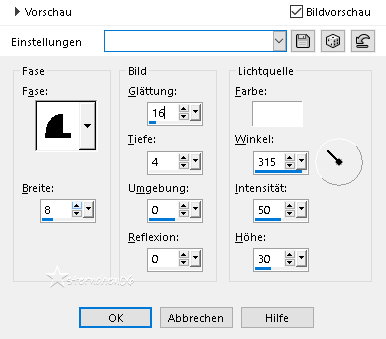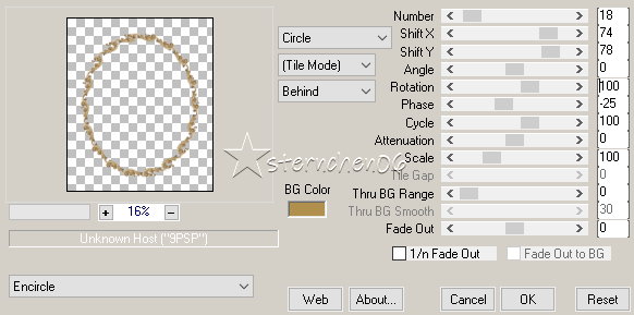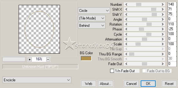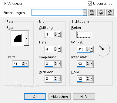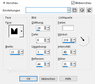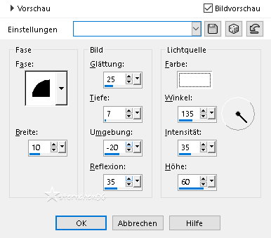 Achtung Änderungen in PSP 2020 beim Mischmodus ![]() ![]() Das Copyright des ins deutsche PSP übersetzten Tutorials liegt bei mir sternchen06 aka A.Brede-Lotz. Das Tutorial darf nicht kopiert oder auf anderen Seiten zum Download angeboten werden. Herzlichen Dank liebe Misae, dass ich deine Tutoriale ins Deutsche übersetzen darf Muchas gracias Misae por permitirme traducir sus tutoriales al alemán.![]() ![]() Weitere Tutorials, Bilder zu den Tuts und AI Tuben findest du hier ![]() ![]() Du benötigst: dein PSP 1 Portraitbild (Hochkant) PLUGIN: MuRa's Meister - Copies Farbe: Farbverlauf: Metall Messing ![]() Das Material aus der Schatzkiste ![]() Entpacke das Material an einem Ort deiner Wahl Die Sel Datei verknüpfe mit deinem PSP ![]() *1* Öffne eine neue transparente Leinwand 800 x 950 px *2* Stelle den VG auf den Farbverlauf - HG geschlossen ![]() *3* Aktiviere das Ellipsenwerkzeug ![]() *4* *5* Ansicht - Lineale Ziehe ein Oval beginnend 100 horizontal - 100 vertikal ![]() *6* Ohne loslassen bis 650 horizontal und 800 vertikal ![]() Die Maße sind ungefähr Angaben Ergebnis: ![]() *7* Rechtsklick im EM - In Rasterebene umwandeln ![]() *8* Bearbeiten - Ausschneiden - Bearbeiten - Als neue Ebene einfügen damit wird das Oval auf der Leinwand zentriert Bitte nicht über Objekte zentrieren *9* Lösche im EM die beiden leeren Ebenen ![]() Nach dem Löschen ![]() *10* Effekte - 3D Effekte - Innenfase ![]() *11* Effekte - 3D Effekte - Innenfase ![]() *12* Effekte - 3D Effekte - Innenfase ![]() *13* Ebene duplizieren Bild - Größe ändern - kein Haken bei Größe aller Ebenen anpassen Nach Prozentsatz - auf 97% verkleinern Ebenen - anordnen - Nach unten verschieben Ergebnis: ![]() *14* Neue Rasterebene Auswahl - Auswahl laden/speichern - Auswahl aus Datei... ![]() LADEN *15* Stelle die VG Farbe auf #b18f4c fülle die Auswahl damit Effekte - 3D Effekte - Innenfase ![]() Auswahl aufheben *16* Ändere die Bildgröße auf 20% - - kein Haken bei Größe aller Ebenen anpassen Bearbeiten - Ausschneiden - Bearbeiten - Als neue Ebene einfügen Effekte - Plugins - MuRa's Meister - Copies ![]() Ebene duplizieren Ändere die Bildgröße auf 89% - - kein Haken bei Größe aller Ebenen anpassen Ebenen - Zusammenführen - Nach unten zusammenfassen *17* Einstellen - Schärfe - Unscharf maskieren ![]() Ebenen - zusammenführen - Sichtbare zusammenfassen *18* Öffne "Ornamento_misae_marco_ovalado_1" Bildgröße auf 16% ändern - - kein Haken bei Größe aller Ebenen anpassen Bearbeiten - kopieren als neue Ebene in deine Leinwand einfügen Effekte - Plugins - MuRa's Meister - Copies ![]() Einstellen - Schärfe - Unscharf maskieren - OK Ebenen - zusammenführen - Sichtbare zusammenfassen *19* Bildgröße auf 85% ändern - - kein Haken bei Größe aller Ebenen anpassen Öffne "Ornamento_misae_marco_ovalado_2" Bearbeiten - kopieren als neue Ebene in deine Leinwand einfügen Bildgröße auf 45% ändern - - kein Haken bei Größe aller Ebenen anpassen Effekte - Bildeffekte - Versatz ![]() Einstellen - Schärfe - Scharfzeichnen *20* Öffne "Ornamento_misae_marco_ovalado_3" Bearbeiten - kopieren als neue Ebene in deine Leinwand einfügen Bildgröße auf 45% ändern - - kein Haken bei Größe aller Ebenen anpassen Effekte - Bildeffekte - Versatz ![]() Ebene duplizieren Bild - Spiegeln - Vertikal spiegeln Ebenen- Anordnen - Nach unten verschieben Gehe auf die obere Ebene - Nach unten zusammenfassen Einstellen - Schärfe - Scharfzeichnen Ebenen - zusammenführen - Sichtbare zusammenfassen *21* Öffne und kopiere dein Bild Als neue ebene in deine Leinwand einfügen Nach unten anordnen Ändere die Bildgröße so das Das Portrait in der Mitte des Rahmens liegt mache diese Ebene eben unsichtbar (Auge schließen) aktiviere die Rahmenebene Aktiviere den Zauberstab - Toleranz 10 - Randschärfe 0 klicke in die Mitte des Rahmens Auswahl ändern - Vergrößern - 2 px Aktiviere die Portraitebene Auswahl umkehren klicke die Entfernen Taste Auswahl aufheben Ebenen - zusammenführen - Sichtbare zusammenfassen Effekte - 3D Effekte - Schlagschatten ![]() *22* Schreibe nun den Credit für das Bild und deine Signatur mittig unter den Rahmen Ebenen - zusammenführen - Sichtbare zusammenfassen ich habe dann eine Auswahl um alles gezogen Bearbeiten - Auf Auswahl beschneiden und dann auf 900 px geändert speichere das ganze nun als PNG ![]() Tutorialübersetzung by sternchen06 #Februar 2026 |