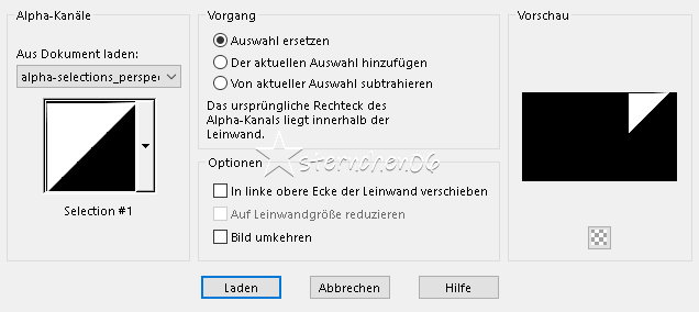 Achtung Änderungen in PSP 2020 beim Mischmodus ![]() Das Copyright des ins deutsche PSP übersetzten Tutorials liegt bei mir sternchen06/A.Brede-Lotz Das Tutorial darf nicht kopiert oder auf anderen Seiten zum Download angeboten werden. Das Original Tutorial von Naise M findest du hier:![]() Bilder und Tuben zu den Tutorials findest du hier Du benötigst dein PSP 1 passende Tube meine ist AI generiert 1 misted Tube Das Material aus der Kiste ![]() Entpacke das Material an einen Ort deiner Wahl Das Preset wird per Doppelklick zugefügt Öffne die Masken in deinem PSP PLUGINS: Carolaine and Sensibility - CS HLine Alien Skin - Eye Candy 5: Impact - Glass FARBEN: ![]() *1* Öffne "alpha-selections_perspectivas" erstelle mit den Tasten Umschalten und D ein Kopie das Original kannst du schließen Fülle die Ebene mit der VG Farbe Ebenen - Neue Maskenebene - Aus Bild ![]() OK - Gruppe zusammenfassen *2* Neue Rasterebene Auswahl - Auswahl laden/speichern - Auswahl aus Alpha-Kanal... ![]() LADEN Fülle die Auswahl mit der HG Farbe Auswahl aufheben Effekte - 3D Effekte - Schlagschatten ![]() *3* Effekte - Textureffekte - Glasmosaik ![]() Effekte - Plugins - Carolaine and Sensibility - CS HLines ![]() Ebene duplizieren Bild - Spiegeln - Horizontal spiegeln Zusammenführen - Nach unten zusammenfassen *4* Neue Rasterebene Fülle die Ebene mit der HG Farbe Ebenen - Neue Maskenebene - Aus Bild ![]() OK - Gruppe zusammenfassen Effekte - 3D Effekte - Schlagschatten - OK *5* Auswahl - Auswahl laden/speichern - Auswahl aus Alpha-Kanal... ![]() LADEN Neue Rasterebene Fülle die Auswahl mit der HG Farbe Öffne dein misted Bild - Credit entfernen Bearbeiten - Kopieren zurück zu deiner Leinwand Bearbeiten - In eine Auswahl einfügen Effekte - Plugins - Alien Skin - Eye Candy 5: Impact - Glass User Settings: preset_perspectivas oder Basic: ![]() Auswahl aufheben *6* Neue Rasterebene Öffne und kopiere "decor_nmcriacoes_102" zurück zu deiner Leinwand Auswahl - Alle auswählen Bearbeiten - In eine Auswahl einfügen bei Bedarf einfärben Auswahl aufheben Bild - Spiegeln - Vertikal spiegeln *7* Neue Rasterebene fülle diese mit der HG Farbe Ebenen - Anordnen - An letzte Stelle verschieben *8* Bild - Rand hinzufügen - symmetrisch 9 px - dunkle Farbe aus dem Bild 47 px - helle Farbe aus dem Bild Markiere den Rand mit dem Zauberstab (Toleranz und Randschärfe 0) Auswahl - Ändern - Auswahlrahmen auswählen ![]() Neue Rasterebene fülle diese mit deiner HG Farbe Effekte - Plugins - Alien Skin - Eye Candy 5: Impact - Glass - OK Auswahl aufheben *9* Öffne und kopiere "titulo" Als neue Ebene in deine Leinwand einfügen setze den Text wie in meinem Bild zu sehen nach oben Alternativ: Schriftart: OpineHeavy - Gr. 72 Schreibe: Perspectivas oder Perspective markiere jeden Buchstaben mit dem Zauberstab kopiere deine misted Tube Bearbeiten - In eine Auswahl einfügen Effekte - 3D Effekte - Schlagschatten - OK Auswahl aufheben *10* Öffne deine Haupttube - Credit entfernen Bearbeiten - Kopieren zurück zu deiner Leinwand Als neue Ebene einfügen passe die Größe der Tube an - orientiere dich an meinem fertigen Bild Alles zusammenfassen Ändere die Bildgröße auf 900 px Schreibe den Credit für die Tube sowie deine Signatur auf das Bild Alles zusammenfassen und als jpg/png speichern ![]() Tutorialübersetzung by sternchen06 #September 2025 |