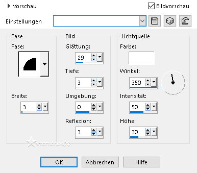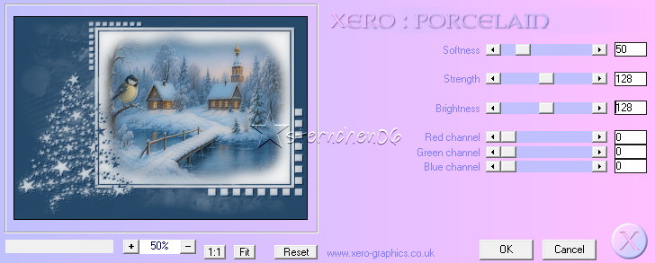 ![]() Farbverlauf 1: ![]() Farbverlauf 2: ![]() *1* Öffne eine neue transparente Leinwand 650 x 450 px fülle diese mit der VG Farbe Neue Rasterebene fülle diese mit der HG Farbe Ebenen - Neue Maskenebene - Aus Bild ![]() Gruppe zusammenfassen *2* Neue Rasterebene Aktiviere das Auswahlwerkzeug (S) ziehe innerhalb des weißen Rahmens der Maske eine Auswahl Kopiere dein misted Bild - ohne Credit zurück zu deiner Leinwand Bearbeiten - In eine Auswahl einfügen Auswahl aufheben Ebenen - Anordnen - Nach unten verschieben Zusammenführen - Alle zusammenfassen *3* Effekte - Plugins - FM Tile Tools - Blend Emboss - Standard Effekte - Plugins - Xero - Porcelain ![]() Bild - Rand hinzufügen - symmetrisch 1 px - weiß minimiere das Bild - du benötigst es später *4* Öffne eine neue transparente Leinwand 800 x 600 px fülle diese mit Farbverlauf 1 I.C.Net Software - FU2 -Special Effects 1 - Shiver ![]() Effekte - Kanteneffekte - Nachzeichnen Neue Rasterebene fülle diese mit der HG Farbe - Deckkraft: 40 Ebenen - Zusammenführen - alle zusammenfassen Effekte - Kanteneffekte - Nachzeichnen *5* Effekte - Alien Skin - Xenofex 2 - Constellation ![]() Aktiviere das unter Punkt 3 minimierte Bild und kopiere es zurück zu deiner Leinwand Bearbeiten - als neue Ebene einfügen Bild - Größe ändern - kein Haken bei Größe aller Ebenen anpassen - auf 65% verkleinern Verschiebe es nach oben rechts - siehe mein fertiges Bild Effekte - 3D Effekte - Schlagschatten ![]() *6* Öffne deine Haupttube - Credit entfernen Bearbeiten - Kopieren zurück zu deiner Leinwand Bearbeiten - Als neue Ebene einfügen Tube evtl. spiegeln und Größe anpassen - orientiere dich an meinem Bild setze die Tube nach links und unten Bild - Rand hinzufügen - symmetrisch 1 px - weiß 2 px - HG Farbe 1 px - weiß 50 px - HG Farbe markiere den Rand mit dem Zauberstab (Toleranz und Randschärfe 0) fülle die Auswahl mit Farbverlauf 2 Einstellen - Unschärfe - Gaußsche Unschärfe - Radius: 30 *7* Effekte - Plugins - Xero - Fritillary ![]() Effekte - Kanteneffekte - Nachzeichnen Effekte - Plugins - Xero - Porcelain - OK Auswahl aufheben Öffne und kopiere "bells03_msr" Als neue Ebene in deine Leinwand einfügen Einstellen - Farbton und Sättigung - Kolorieren ![]() Bzw. Werte passend zu deiner Farbe Einstellen - Schärfe - Scharfzeichnen setze die Tube nach oben und rechts - orientiere dich an meinem Bild Effekte - 3D Effekte - Schlagschatten ![]() Effekte - Plugins - FM Tile Tools - Blend Emboss - OK *8* Bild - Rand hinzufügen - symmetrisch 1 px - weiß 5 px - HG Farbe markiere den 5 px Rand mit dem Zauberstab Effekte - 3D Effekte - Innenfase ![]() Auswahl aufheben Aktiviere das Textwerkzeug Font: PirouetteLTStd-Regular - Größe: 72 px - HG Farbe weiß Schreibe deinen Text - In Ebene umwandeln Platziere den Text wie auf meinem Bild zu sehen Effekte - 3D Effekte - Schlagschatten 1 - 1 - 65 - 1 - schwarz *9* Schreibe den Credit für die Tube, BG by... und deine Signatur auf das Bild Alles zusammenfassen Aktiviere das Auswahlwerkzeug und ziehe eine Auswahl innerhalb des Rahmens ![]() Effekte - Plugins - VDL Adrenalin - Snowflakes ![]() Alternativ kannst du VanDerLee - Snowflakes mit denselben Werten nutzen Auswahl aufheben Bearbeiten - Kopieren Öffne den Animations Shop Rechtsklick auf die Arbeitsfläche Einfügen als neue Animation zurück zu deinem PSP *10* 2x Rückgängig machen Effekte - Plugins - VDL Adrenalin - Snowflakes ändere bei Random Seed den Wert auf 545 Auswahl aufheben Bearbeiten - Kopieren zurück zum Animations Shop Bearbeiten - Einfügen - Nach dem aktuell ausgewählten Einzelbild zurück zu deinem PSP *11* 2x Rückgängig machen Effekte - Plugins - VDL Adrenalin - Snowflakes ändere bei Random Seed den Wert auf 1364 Auswahl aufheben Bearbeiten - Kopieren zurück zum Animations Shop Bearbeiten - Einfügen - Nach dem aktuell ausgewälten Einzelbild *12* Bleib im Ani Shop markiere Bild 1 - Bearbeiten - Alle auswählen Animation - Bildeigenschaften - 20 Auswahl beibehalten Animation - Animationsgröße - ändere die Breite auf 900 px Über das Wiedergabesymbol kannst du dir die Animation ansehen - bist du zufrieden speichere dein Bild als GIF ab Tutorialübersetzung by sternchen06 #Dezember 2025 |