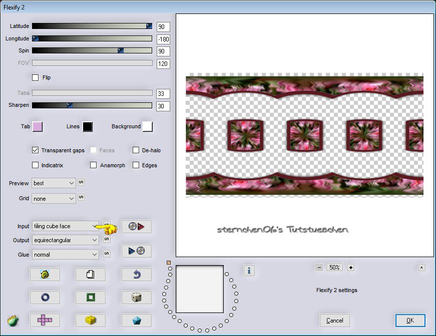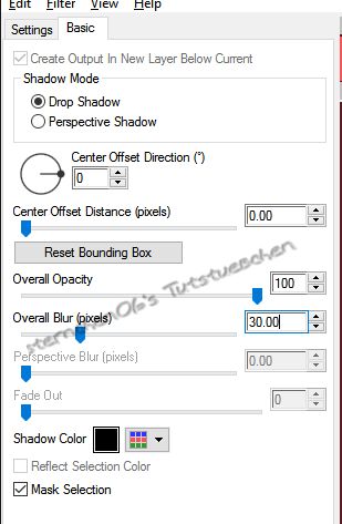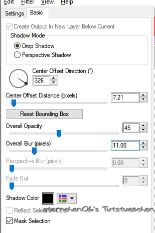 wende auf die oberste Ebene den Effekt - Alien Skin - Eye Candy 5: Impact - Perspective Shadow mit den Einstellungen aus Punkt 7 an 12. Wir sind immer noch auf der Obersten Ebene Effekte - Plugin - Flaming Pear - Flexify 2