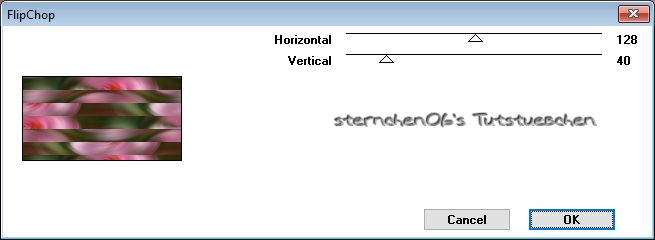 3. Effekte - Kanteneffekte - Nachzeichnen Effekte - Plugin - VM Distortion (evtl. in den FU2 importiert) - FlipChop