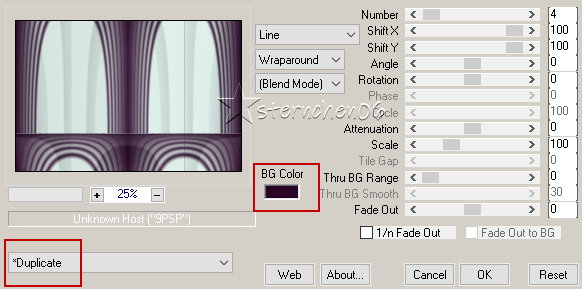 VGHG ![]() Linearer Farbverlauf ![]() ~1~ Öffne eine neue transparente Leinwand 900 x 600 px Fülle sie mit dem Farbverlauf Effekte - Plugins - I.C.Net Software - FU2 - FunHouse - Reverb... ![]() ~2~ Effekte - Plugins - Tramages - Panel Stripes ![]() Effekte - Plugins - MuRa's Meister - Pole Transform ![]() Effekte - Plugins - MuRa's Meister - Copies ![]() ~3~ Effekte - Plugins - I.C.Net Software - FU2 - &<Background Designer IV> - sf10 Shades of Shadow ![]() Effekte - Plugins - Graphics Plus - Horizontal Mirror ![]() Einstellen - Rauschen entfernen/hinzufügen - Rauschen hinzufügen ![]() ~4~ Öffne deine Haupttube - Credit entfernen Bearbeiten - Kopieren Als neue Ebene in deine Leinwand einfügen passe die Größe der Tube an - orientiere dich an meinem Bild evtl. spiegeln - schiebe sie entweder nach links oder rechts, das bleibt dir überlassen Gebe der Tube noch einen Schatten deiner Wahl Zusammenführen - Sichtbare zusammenfassen ~5~ Einstellen - Weichzeichnen - Weicher Focus - Portrait1 ![]() Einstellen - Helligkeit und Kontrast - Fülllicht/Klarheit... ![]() ~6~ Neue Rasterebene Aktiviere den Pinsel und suche "prettyju_reflective_moment" ![]() Klicke 1mal in der gewünschten Farbe auf deine Leinwand Aktiviere das Verschiebewerkzeug M und setze den Text dahin wo du magst Öffne und Kopiere "prettyju_reflective_deco" Als neue Ebene in deine Leinwand einfügen setze die Deko wie du magst - es ist abhängig davon auf welcher Seite deine Tube ist Färbe die Deko mit dem Umfärber in