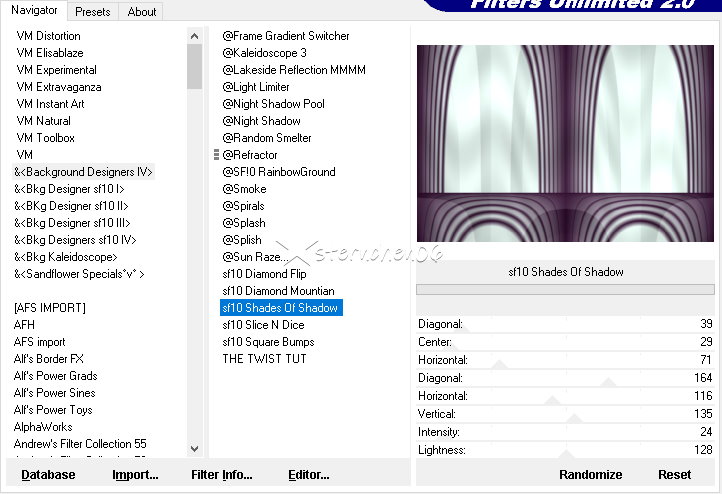 Achtung Änderungen in PSP 2020 beim Mischmodus ![]() Das Copyright des ins deutsche PSP übersetzten Tutorials liegt bei mir sternchen06/A.Brede-Lotz Das Tutorial darf nicht kopiert oder auf anderen Seiten zum Download angeboten werden. Das Original Tutorial ist von Pretty Judu findest es hier ![]() Weitere Tutorials und Tuben zu den Tuts findest du hier Du benötigst dein PSP 1 Haupttube meine ist AI generiert Das Material aus der Box ![]() Entpacke das Material an einem Ort deiner Wahl Die beiden Pinsel Dateien "BrushTip_prettyju_refective_moment" und "prettyju_refective_moment" speichere in deinem Pinselordner Die Datei "Masques - pju_filmstrip_horizontal.ffx" importiere in den Filter Unlimited 2.0 Grün gesschriebene Filter werden in den FU importiert I.C.Net Software - FU2 FunHouse - Reverb... &<Background Designer IV> - sf10 Shades of Shadow Masques - pju_filmstrip_horizontal Graphics Plus - Horizontal Mirror MuRa's Meister - Pole Transform und Copies Tramages - Panel Stripes FARBEN: Ich habe die Original Farben genutzt