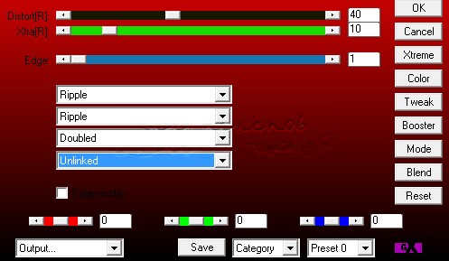 setze den Mischmodus der Ebene auf Multiplikation - oder einen Modus entsprechend deiner Farbe 6. aktiviere die Hintergrundebene - Effekte - Plugin - AP 16(Power Blend) - Distort - Grid Edge mit den einstellungen vom Screen