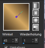 Vordergrund: Hell - Hintergrund: dunkel Klicke auf die Vordergrundfarbe - Farbverlauf - Linear - Winkel: 45 Wiederholung:1