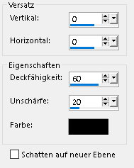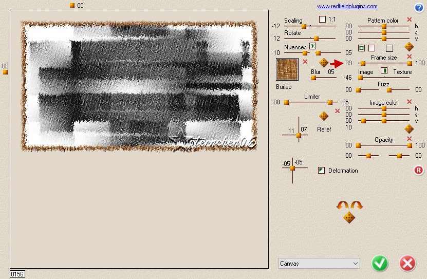 klicke in den hellen Bereich - Ergebnis ![]() *2* aktiviere die 2. Kopie Effekte - Plugins - Redfield - Plasteroid ![]() Bearbeiten - Kopieren zurück zu der 1. Leinwand Bearbeiten - Als neue Ebene einfügen Effekte - Benutzerdefinierter Filter - Emboss_3 ![]() Mischmodus: Weiches Licht oder was besser zu deinen Farben passt *3* Öffne die Maske "1250181886_nikita_masques" Bearbeiten - Kopieren Bearbeiten - Als neue Ebene in deine Hauptleinwand einfügen Setze die VG Farbe auf Farbe 4 aktiviere den Umfärber - klicke 2 mal auf die Maske Ergebnis: ![]() Mischmodus: Überzug *4* Neue Rasterebene Auswahl - Alle auswählen Öffne und kopiere "fondo_1" oder deinen eigenen HG zurück zu deiner Leinwand Bearbeiten - In eine Auswahl einfügen Auswahl aufheben Effekte - Benutzerdefinierter Filter - Emboss_3 Deckkraft: 51% *5* Öfne und kopiere "12930422558_divers_nikita" als neue Ebene in deine Leinwand einfügen Objekte - Ausrichten - Oben Objekte - Ausrichten - Links *6* Öffne und kopiere "fondo_2 Aktiviere das Linear (Ansicht - Lineare) Verschiebe den Hg ungefähr wie auf dem Screen zu sehen - danach kannst du _Lineale wieder deaktivieren ![]() Effekte - Plugins - I.C.Net Software - FU2 - &<Bkg sf10 I - Center Mirror ![]() Mischmodus: Aufhellen (alt) Deckkraft: 95% Platziere es oben links - es muss noch nicht genau sein, du kannst es später noch verschieben, wenn du deine Haupttube eingefügt hast *7* Öffne und kopiere "MBbackgrounds_49" als neue Ebene in deine Leinwand einfügen Objekte - Ausrichten - Oben Objekte - Ausrichten - Rechts Bild - Negativbild *8* Öffne und kopiere "sakura-starfield_112" als neue Ebene in deine Leinwand einfügen Bild - Negativbild platziere es wie im Screen zu sehen Ergebnis: ![]() *9* Öffne und kopiere "mariposas_doradas_rb" als neue Ebene in deine Leinwand einfügen Bild - Spiegeln - Horizontal spiegeln Objekte - Ausrichten - Rechts Einstellen - Schärfen - Scharfzeichnen Effekte - 3D Effekte - Schlagschatten ![]() *10* Öffne deine Haupttube - Credit entfernen Bearbeiten - Kopieren als neue Ebene in deine Leinwand einfügen passe die Größe der Tube an verschiebe sie nach links - orientiere dich an meinem Bild Einstellen - Schärfen - Scharfzeichnen Effekte - 3D Effekte - Schlagschatten - OK *11* ![]() *12* Öffne "texto_undiacualquiera" Aktiviere das Auswahlwerkzeug und ziehe eine Auswahl um die Wörter "Un Dia" Bearbeiten - Kopieren als neue Ebene in deine Leinwand einfügen Platziere es an einem Platz deiner Wahl Bild - Negativbild oder färbe es nach Wunsch ein Aktiviere die Textleinwand erneut Auswahl aufheben ziehe eine Auswahl um das Wort "cualquiera" Bearbeiten - Kopieren als neue Ebene in deine Leinwand einfügen Platziere es an einem Platz deiner Wahl Bild - Negativbild oder färbe es nach Wunsch ein Ebenen - Zusammenführen - Nach unten zusammenfassen Effekte - 3D Effekte - Schlagschatten - Farbe 2 ![]() *13* Bild - Rand hinzufügen - symmetrisch 3 px - weiß Bearbeiten - Kopieren Auswahl - Alle auswählen Bild - Rand hinzufügen - symmetrisch 20 px - Farbe egal Auswahl umkehren Bearbeiten - In eine Auswahl einfügen Einstellen - Unschärfe - Gaußsche Unschärfe - Radius: 15 Auswahl aufheben Auswahl - Alle auswählen Bild - Rand hinzufügen - symmetrisch 40 px - Farbe aus dem HG - hier Farbe 4 Auswahl umkehren Öffne und kopiere "marco_un_dia" Zurück zu deiner Leinwand Bearbeiten - In eine Leinwand einfügen Auswahl aufheben *14* Öffne und kopiere "puntos_dorados_2" als neue Ebene in deine Leinwand einfügen setze die punkte nach oben links in die Ecke - siehe mein fertiges Bild Effekte - Plugins - Simple - Top Left Mirror Alles zusammenfassen Ändere die Bildgröße für mich auf 900 px Schreibe den Credit für die Tube und deine Signatur leserlich auf dein Bild Alles zusammenfassen und als jpg/png speichern |
